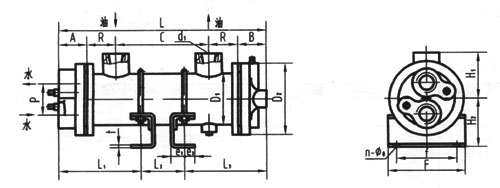| 型號(hào) | 換熱 面積m2 | L | L1 | C | R | D1 | H1 | d1 | l1 | l2 | l3 | H2 | F | f | e1 | e2 | t | n-ф | D2 | p | d2 | A | B |